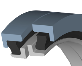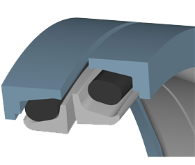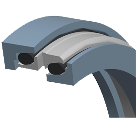 Square bore face seal - два металлических угловых уплотнительных кольца с одинаковыми геометрическими контурами, собранные из трапециевидных эластомерных деталей, расположенных напротив отверстия в корпусе. Требует меньше места для установки, чем стандартные конструкции. | |