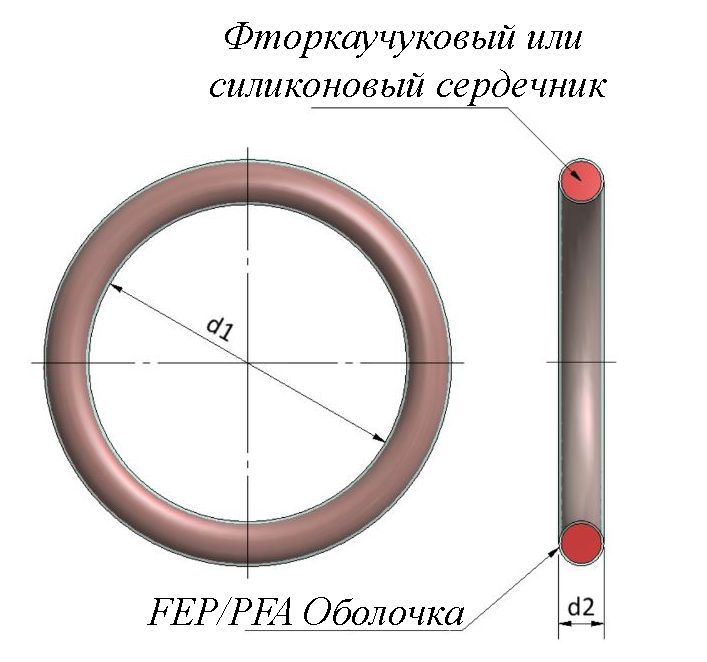 FEP/PFA/РФК капсулированные кольца FEP-O-SEAL – это уплотнительные элементы, состоящие из сердечника изготовленного из эластомера, покрытого бесшовной оболочкой, выполненной из модифицированного фторопласта (PTFE-beschichtet), рамзеры колец регламентируются по DIN 3771 или в редких случаях по ГОСТ 9833-73.