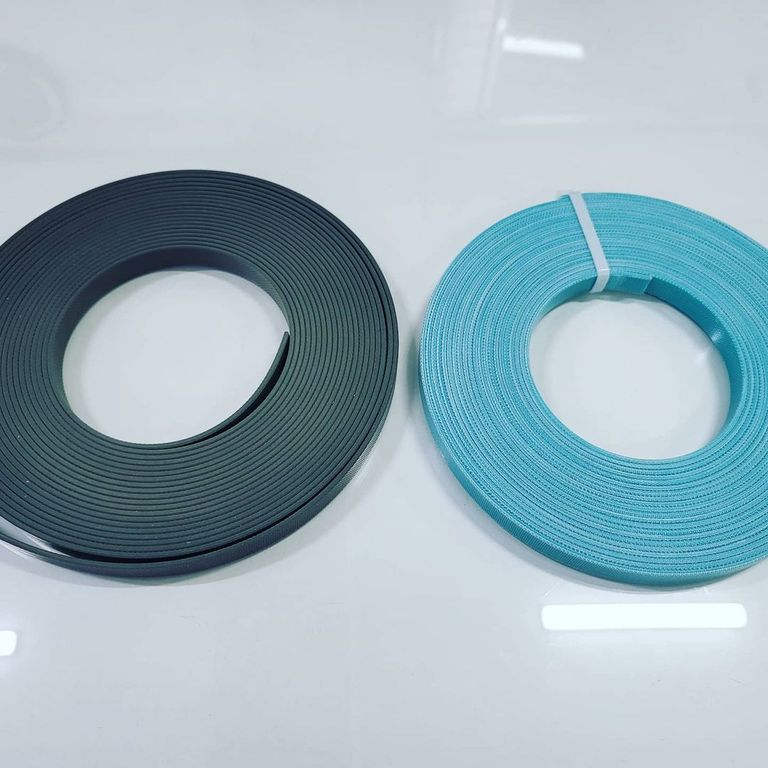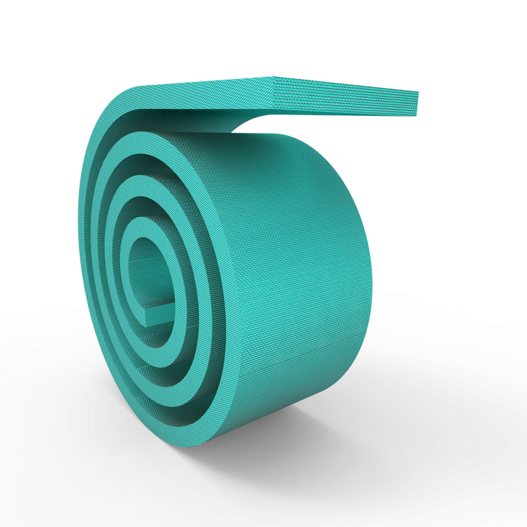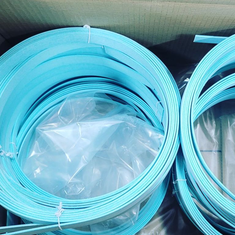 Кольца из направляющей ленты применяются для центровки штоков и поршней гидроцилиндров. Лента бирюзового цвета изготовлена из тканого полиэстерного волокна ламинированного полимерным компаундом. Профиль ленты – прямоугольный с фасками или закруглениями на гранях.